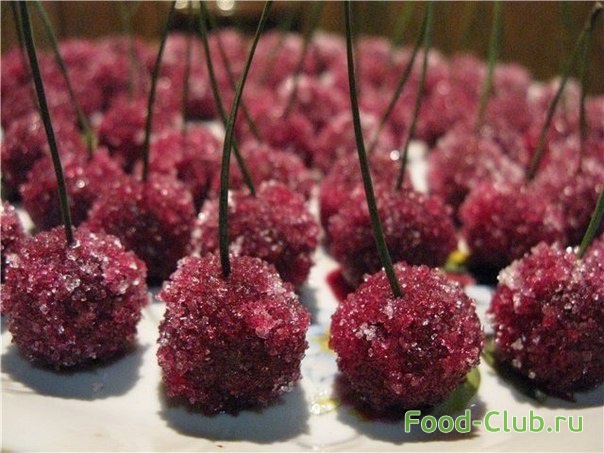 5. Вылепливайте небольшие шарики, макайте их в сок, и сразу же обваливайте в сахаре, складывайте на блюдо.