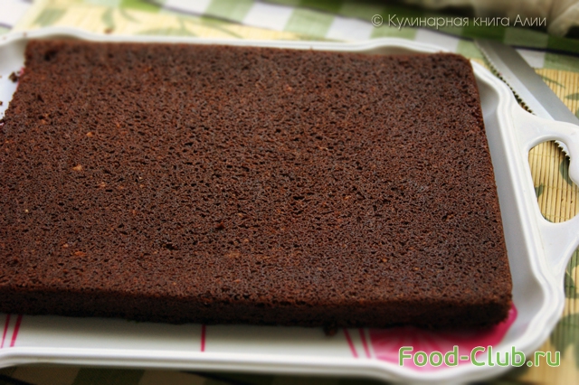 Бисквит разрежьте на равные прямоугольнички. Соберите пирожные, промазав кремом один кусочек и сложив 2 прямоугольника вместе.
