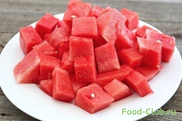 1. Для начала очистите арбуз от кожуры, выньте из него все косточки и нарежьте мякоть на небольшие кубички. Выжмите сок из лимона.