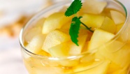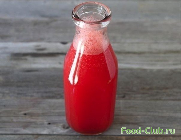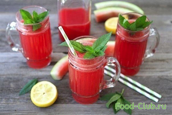 3. Процедите напиток через сито, выбросите мякоть и оставьте сок, перелейте его в емкость и охладите до подачи. Перед подачей украсьте веточками мяты или мелиссы. Наслаждайтесь!