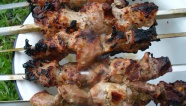 Жарить над раскаленными углями, периодически переворачивая шампуры.