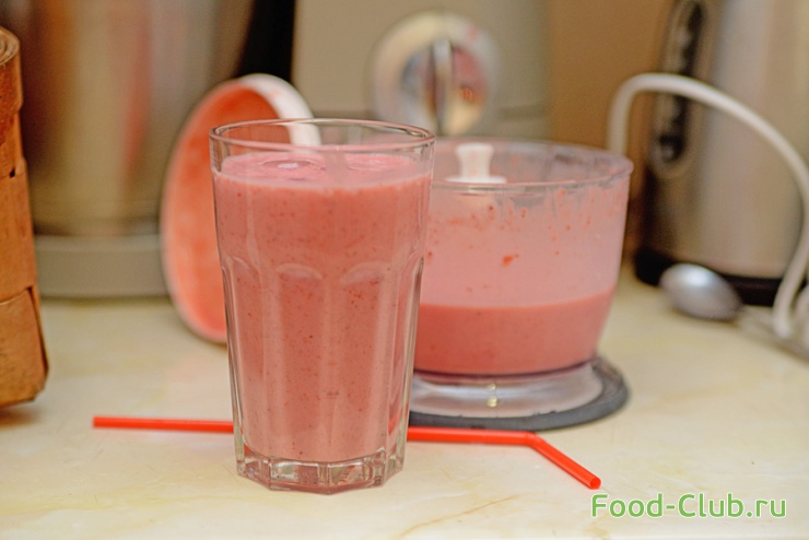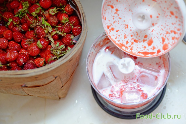 1. Клубнику измельчите в блендере с сахарной пудрой и ванильным сахаром.