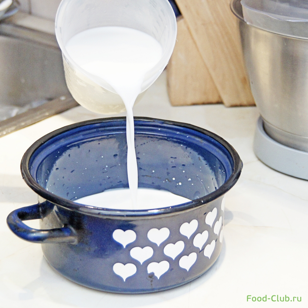 1. Молоко со сливками залейте в кастрюлю и доведите до кипения. Уберите с плиты.