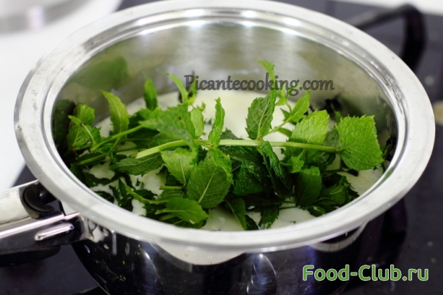 1. Сливки перемешиваем с молоком, добавляем мяту и доводим до кипения. С первыми пузырьками снимаем массу с огня.
