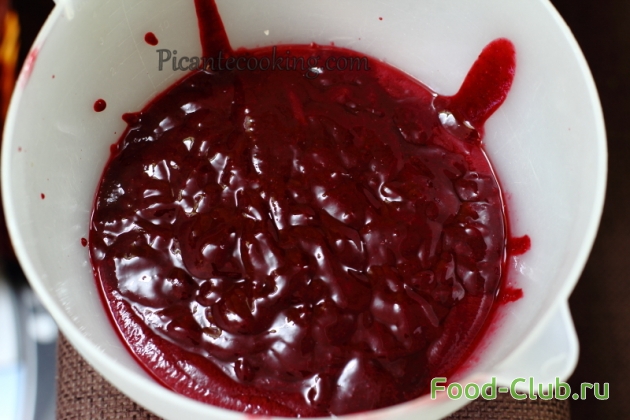 5. Взбиваем массу блендером до однородности. Через сито протираем к ягодам молочную массу, все хорошо перемешиваем.