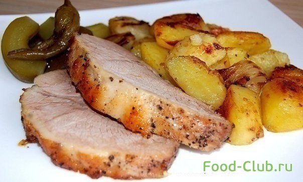 4. Рукав завязываем, помещаем в противень и ставим в предварительно нагретую до 180 градусов духовку на 40 минут. В это время готовим картофель по-деревенски. Чистим и крупно нарезаем картофель и лук, добавляем смесь привычных специй, поливаем растительным маслом, хорошо перемешиваем и помещаем запекаться в духовку.