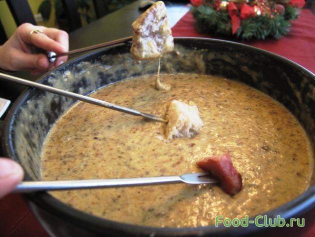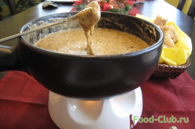 Это рецепт швейцарского лакомства, которое так просто сделать дома. Фондю – прекрасная закуска и способ занять гостей. Если нет специальной посуды для фондю, то блюдо можно приготовить в любой керамической кастрюле с толстым дном. Единственное без чего не обойтись так это без настольного подогревателя на свече, сухом спирте или газе.