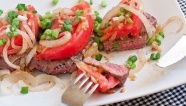 4. Лук очистите и мелко порежьте. Лук посолите и сожмите руками, чтобы размягчить его немного. Смешайте с мясом.