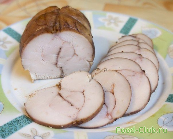 3. Скручиваем каждую грудку в рулет и скрепляем шпагатом. Укладываем мясо на противень и ставим в предварительно разогретую духовку на 25 минут. По истечению времени выключаем духовку и оставляем там мясо на несколько часов остывать.