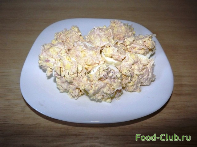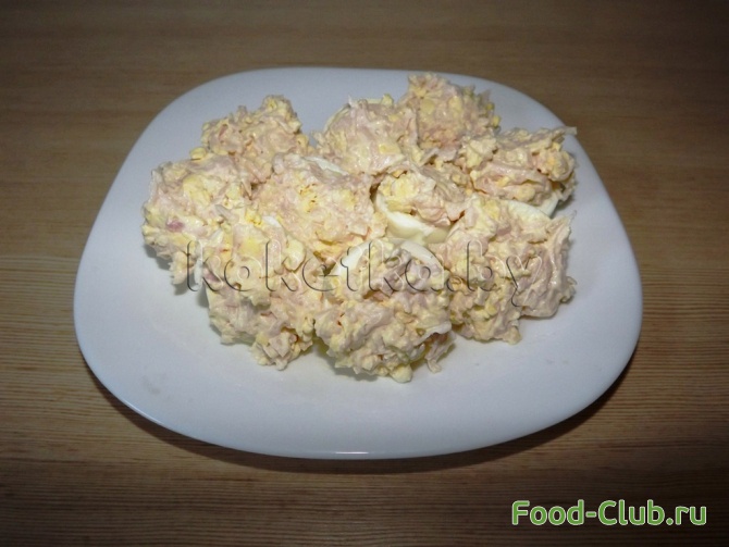 8. Получившейся массой начиняем белки. Блюдо готово, можно подавать к столу. Приятного аппетита!
