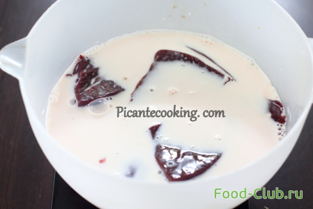 1. Печень моем, обсушиваем бумажными полотенцами, удаляем пленки и крупно нарезаем. Печень перекладываем в небольшую миску и заливаем молоком. Накрываем посуду пищевой пленкой и ставим в холодильник на 24 часа, периодически переворачивая кусочки.