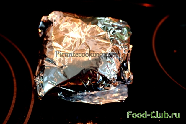 2. Уберите сковородку с огня, мясо плотно оберните фольгой и уберите в морозилку минут на 40-50.