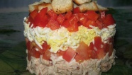 1. Сначала варим курицу, ждем, пока остынет и нарезаем ее соломкой.2. Ветчину тоже режем соломкой, моем и чистим перец и нарезаем кубичками.