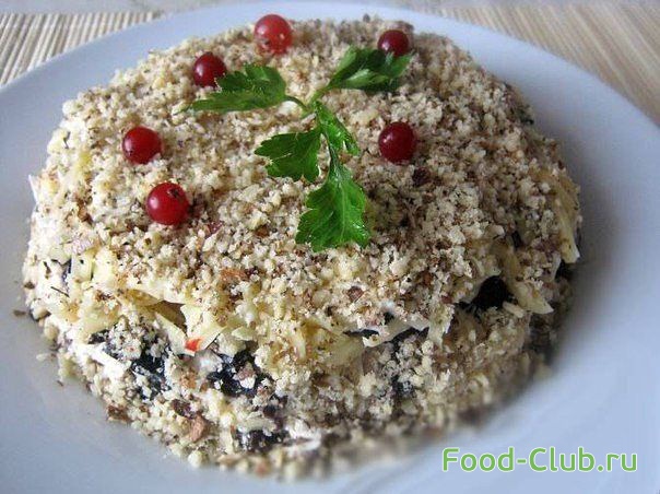 Этот салат отлично подойдет к праздничному столу, но никто не отменяет тихий семейный ужин с таким вкусным салатом. Чернослив, куриное мясо и грецкие орехи-это идеальное сочетание, обязательно попробуйте!Для начала отварите куриное филе в подсоленной воде минут 20, затем охладите, нарежьте на небольшие кубички и хорошенько смешайте с майонезом. Нарежьте грибы на пластинки, а лук на кубички. Разогрейте сковородку с подсолнечным маслом и обжарьте на ней лук с грибами до полной готовности, минут 8-10, иногда помешивая. Затем полностью остудите.
