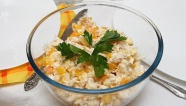 Если вы любите экспериментировать со вкусом, обязательно попробуйте этот необычный салат. Очень быстро, просто и вкусно!Сначала мелко нарубим зелень, выложим в салатник и перемешаем с солью. Сверху нарезаем яйца. Следующим слоем выкладываем мелко нарезанный бекон. Чеснок крупно нарежем рассыплем его поверх бекона. Следующим слоем выкладываем нарубленные помидоры, потом тертый сыр и зеленый горошек. Смешаем майонез со сметанкой и сахаром и выложим эту заправку поверх салата. Готово!