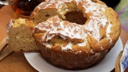 3. Готовим глазурь: взобьем белки с лимонным соком, потом, не переставая взбивать, потихоньку вводим в массу сахарную пудру. Украшаем кекс глазурью и можно кушать.