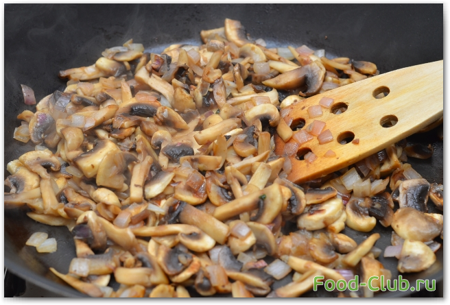 5. Добавляем грибы и продолжаем жарить еще 5-7 минут.