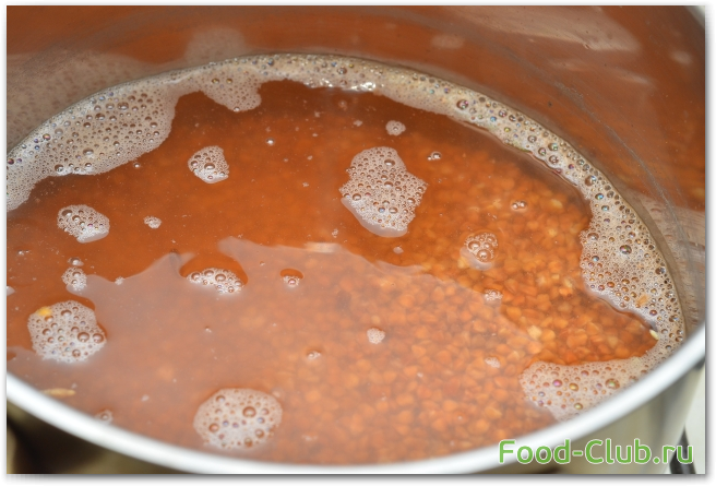 1. Отвариваем гречку в воде в пропорции 1 к 2, это самая безупречная пропорция для этой крупы. В кипящую подсоленную воду всыпаем гречку, убавляем огонь до минимума и варим до готовности. Всыпанную крупу не перемешиваем до окончания варки.