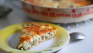 Пару блинчиков выложим в форму как основу для пирога. На каждый блинчик кладем пару ложек начинки, сворачиваем рулетиком, выложим в форму по спирали, улиткой. Для заливки перемешаем молочко с яйцами, зальем пирог. Сверху выложим тертый сыр и отправим в духовку до румяности. Посыплем готовый пирог свежей зеленью.