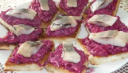 Режем хлеб на кусочки и намазываем на них начинку. Ставим в духовку минут на 10-15. Готово! Приятного аппетита!