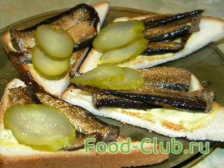 1. Батон нарежьте на ломтики. Огурец порежьте на ломтики, лук порежьте на кольца.2. Каждый кусок смажьте майонезом, сверху положите кусочек огурца, затем пару шпрот и лук.