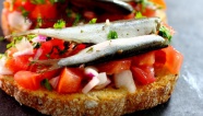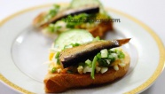 Очень вкусные и яркие бутербродики, которые займут достойное место на вашем праздничном столе. Попробуйте!Сначала нарежем батон произвольными кусочками, с двух сторон обжарим до румяности на растительном маслице. Свеклу потрем на крупной терке, добавим измельченный чесночок, майонез, все вымешаем и разложим на кусочки батона. Сверху выкладываем по кусочку селедочки. Можно украсить зеленью.