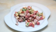 5. Чистим яйца, нарезаем их кубичками и добавляем в салатник.