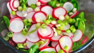 5. Залейте салат сметанным соусом и украсьте зеленью.