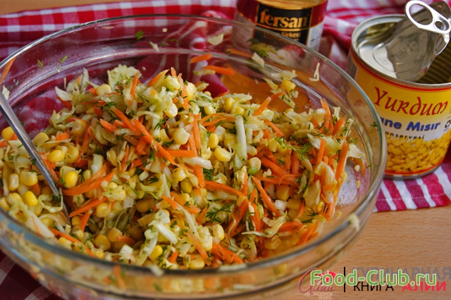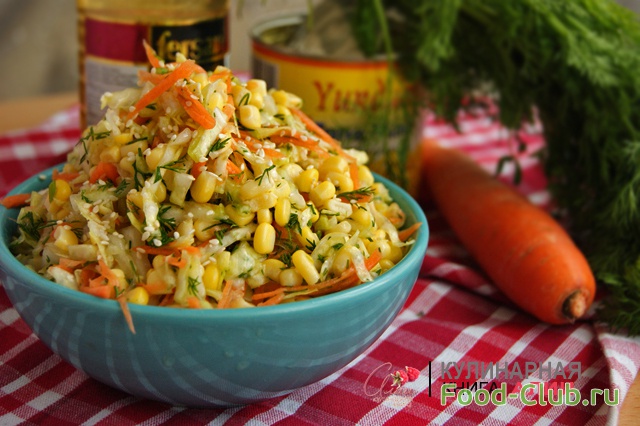 Ссылка на источник рецепта: kulinariya123.blogspot.ru/2014/03/657-salat-s-kapustoj-i-kukuruzoj.html