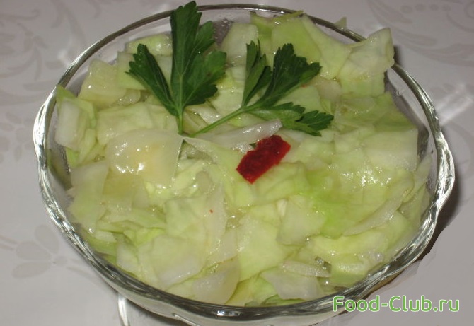 7. Заправляем капусту выжатым лимонным соком и заливаем горячим растительным маслом со специями.