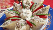 Собственно, переходим к соусу: растопим масло, добавим горчицу, сметану, тертые яйца, вино и измельченную зелень. К пасте добавляем курицу и соус, тертый сыр. Перемешиваем и подаем.