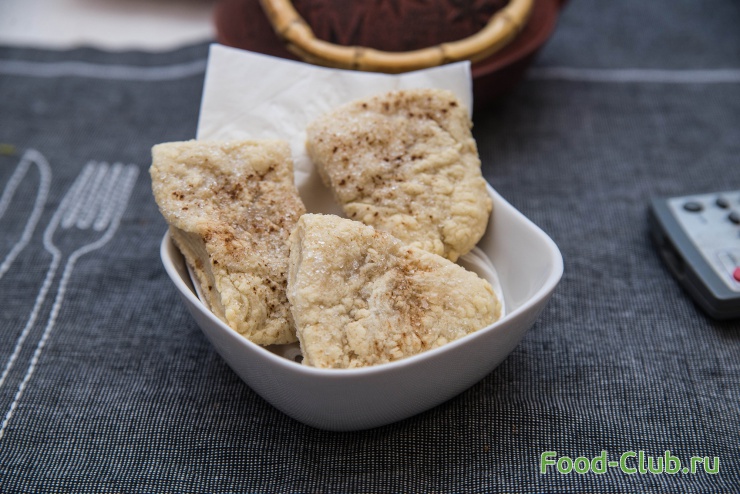 2. На стол посыпьте сахар слоем около ½ см. Положите на сахар печенье, сверху также посыпьте сахаром. Раскатайте тесто до толщины около ¼ см. Выложите на противень. По желанию можно еще посыпать корицей.
