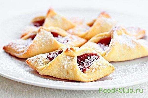 2. В середину квадратов выложите 1 ч.л. густого варенья или джема.