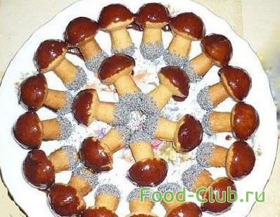На шляпки готовых грибочком полить шоколадную глазурь.