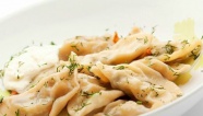 1. Просейте муку с щепоткой соли и добавьте кипяченую воду. Замесите тесто и оставьте его на час.