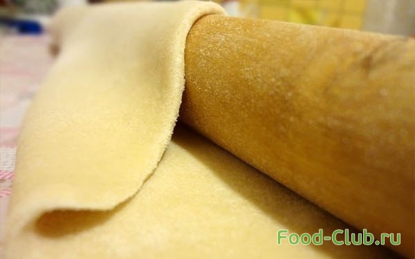 4. Раскатываем тесто в виде круглого тонкого блина, подсыпая муку при необходимости