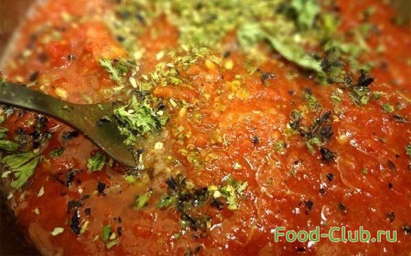 5. Готовим томатный соус, для этого очищаем от кожицы 2-3 средних помидора, измельчаем их в блендере, добавляем приправу и оливковое масло, вновь хорошо перемешиваем. Провариваем соус 5 минут, и даем немного остыть.
