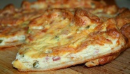 3. Пласт теста слегка раскатываем на, просыпанном мукой, рабочем месте, так, чтобы получился слой толщиной не более 3-4 мм. Вырезаем тесто по форме круга и разделяем на треугольники.