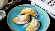 7. Из кусочков теста формируем шарик и не слишком тонко раскатываем на просыпанной мукой рабочей поверхности. В центр кружочков из теста выкладываем начинку по пол столовой ложки.