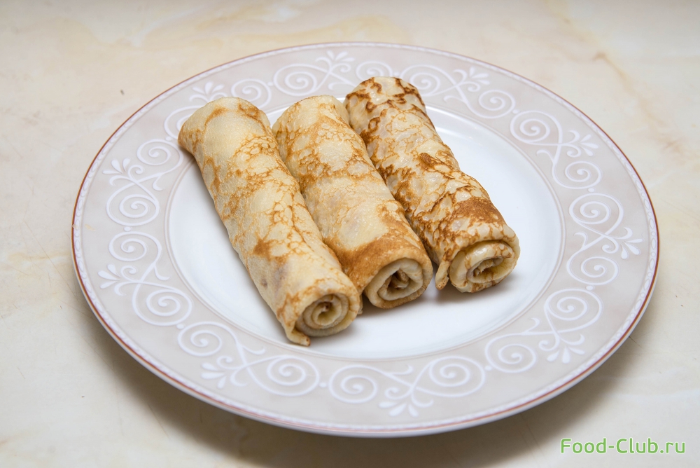 1. В форме рулета. Блин с двух краев слегка заверните к центу. Затем с одного из оставшегося края начните заворачивать в рулетик.