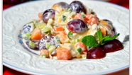 Салат фруктовый с йогуртом очень прост. Отличный салат, особенно летом, в жару. Сытное и полезное блюдо, которое не требует ни специальных знаний, ни навыков.1. Шинкуем все фрукты в тарелку. Если есть в наличии не все ингредиенты ( например, нет клубники), можно добавить другой фрукт, и поэкспериментировать.