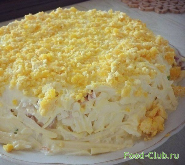 Салат выкладываем послойно, промазывая каждый — майонезом, в следующей последовательности: