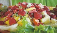 1. Крабовые палочки и помидоры мелко порежьте. Чеснок измельчите.2. Смешайте все ингредиенты, посолите, поперчите и залейте йогуртом.