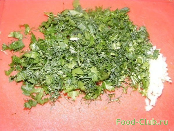 5. Нарезаем зелень (хорошо подойдет петрушка укроп), мелко рубим чеснок.