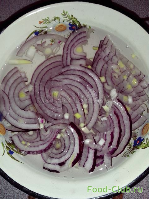 10. На 5 минут выкладываем лук в приготовленный уксус.