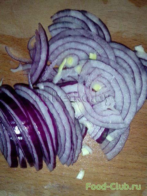 11. Лук немного отжимаем и добавляем его в салат, все хорошо перемешиваем.