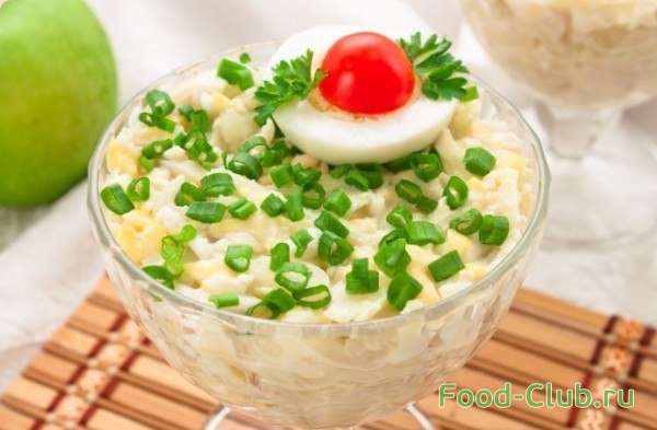 Салат с кальмарами, яблоками и сыром