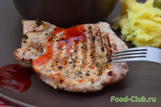 2. Раскаляем сковородку-гриль и выкладываем на нее отбивные. Жарим их минуты 3-4. Если у вас есть только обычная сковородка, тогда отбивные нужно жарить несколько минут с двух сторон.