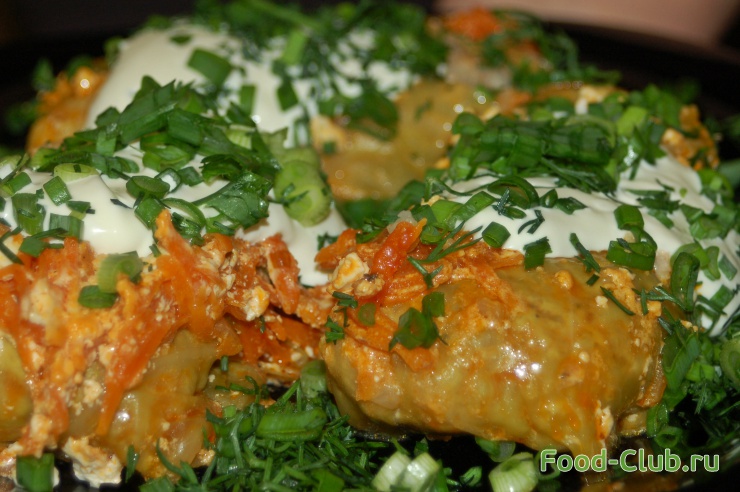 На дно кастрюля, в которой будете тушить голубцы, выложите несколько капустных листочков, это предохранит блюдо от пригорания. -