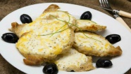 Переложите заправку на голубцы, распределите ее по поверхности. Выложите сметану, специи, лавровый лист. -